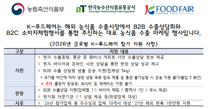 2026년 K-푸드페어 참가업체 하반기 모집공고